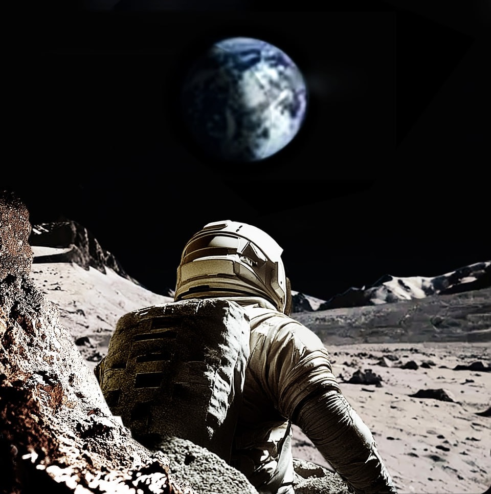 Лунный город находился в глубине горного массива. Только небольшая его часть была покрыта прозрачным куполом. Сид и его напарник в скафандрах вышли через шлюзы из города. Перед ними открылся холодный лунный пейзаж. Царство серого цвета. Серо-пепельные валуны, горы, кратеры отбрасывали резкие и глубокие тени, которые иногда казались провалами в иные миры. Неприветливая картина. Только на тёмном небе мягко светила голубая Земля. Они стояли в тишине, смотря на голубой шар.