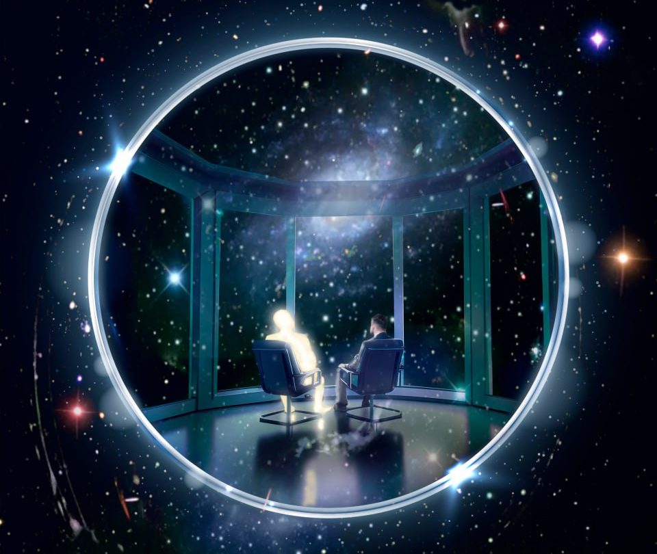 Напротив ученого стоял светящийся человек. Он жестом предложил ему сесть в кресло и сел сам.